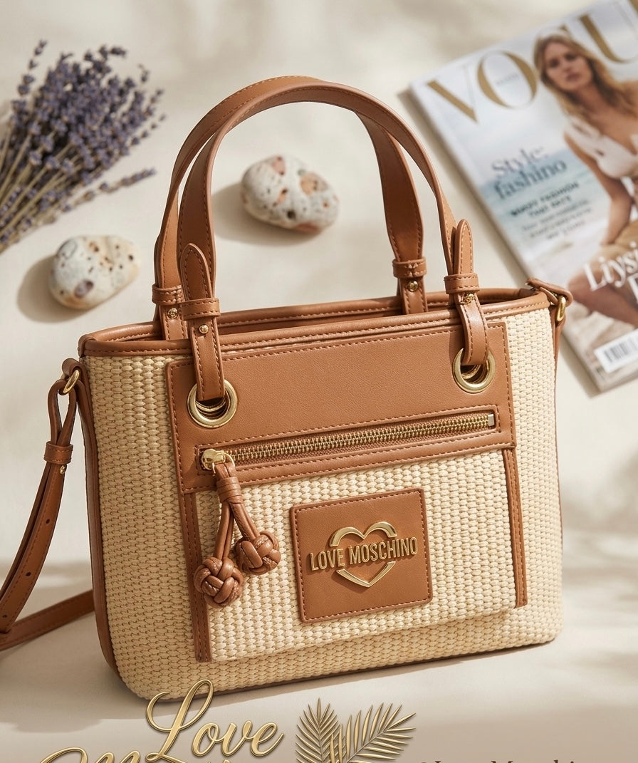 Mala em ráfia com camel